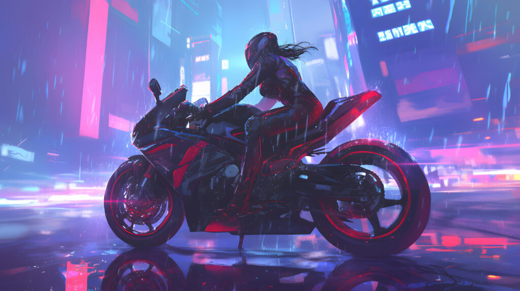 バイクの水素エンジンの始動を示す青い光が微かに点滅した。
